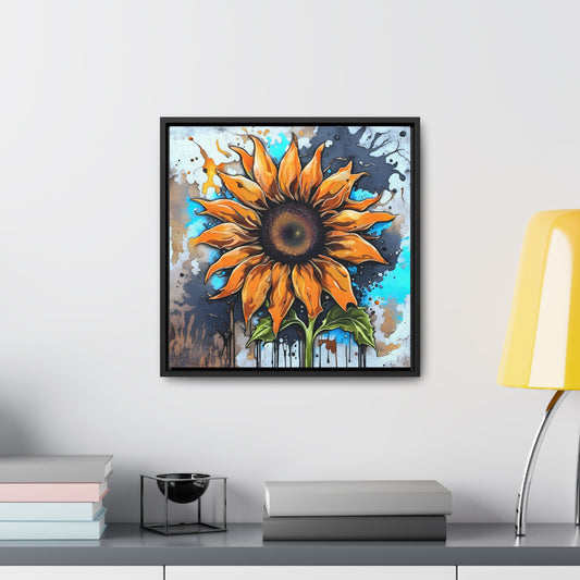 Floral Themed Wall Art - Street Style Sunflower Printed on Canvas in a Floating Frame