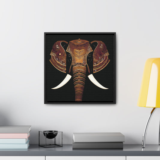 Elephant themed Wall Art Print - Indian Elephant Head With Parade Colors on Black Background Print on Canvas in a Floating Frame