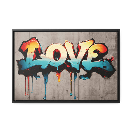 Graffiti Style Wall Art - LOVE on Concrete Slab Print on Canvas in a Floating Frame