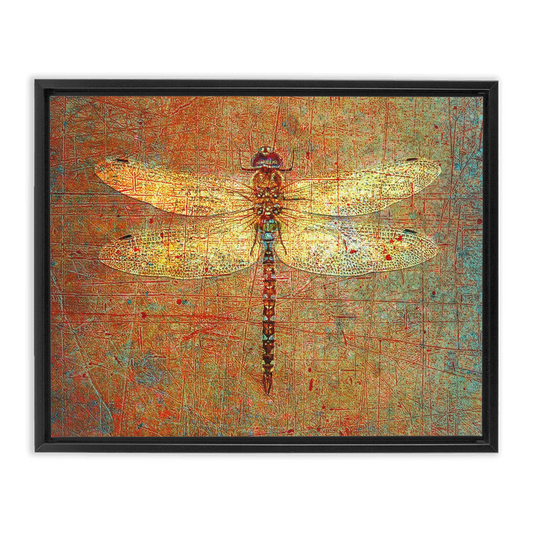 Golden Dragonfly on Distressed Stone Background Floating Frame Canvas