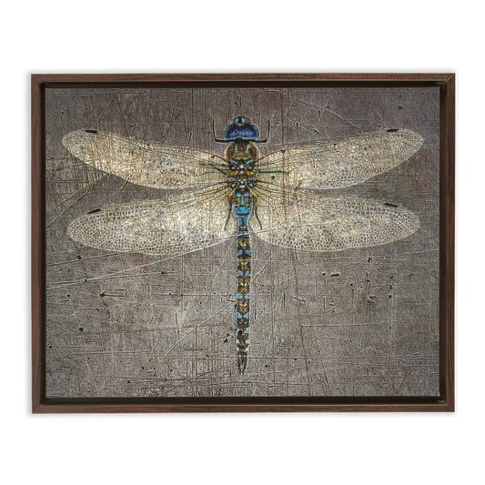 Dragonfly on Distressed Stone Background Rectangular Print on Canvas in a Floating Frame