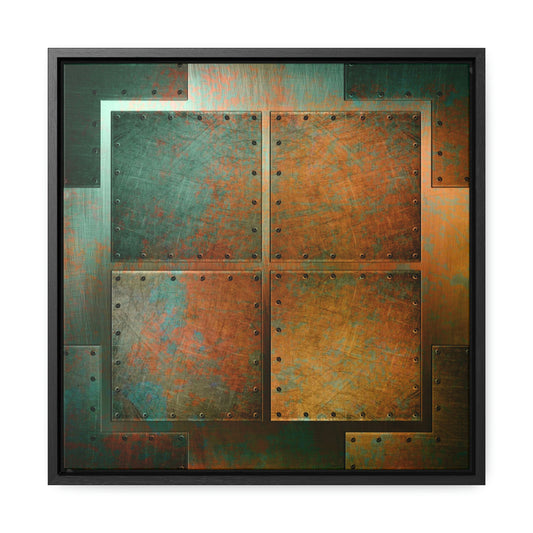 Steampunk Themed Wall Decor - Patinated, Riveted Copper Sheets Print on Canvas in a Floating Frame