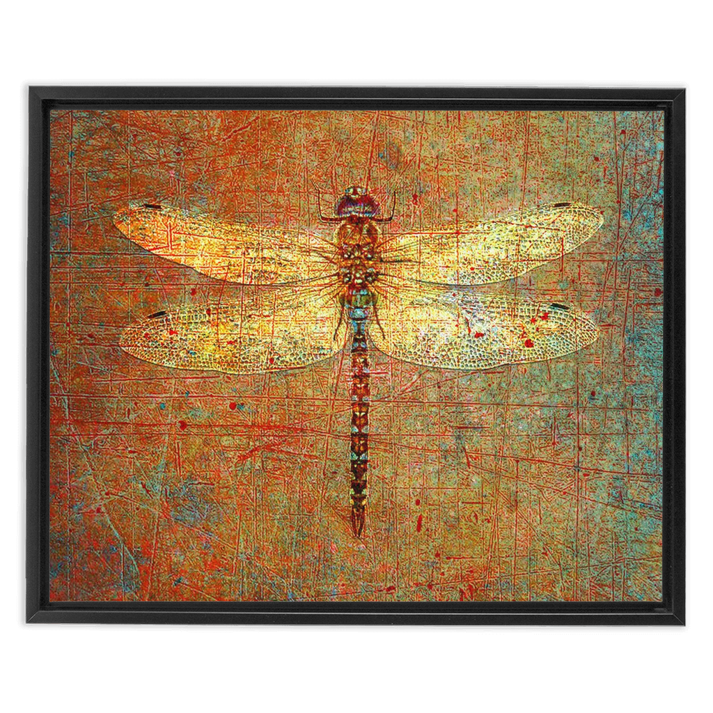 Golden Dragonfly on Distressed Stone Background Floating Frame Canvas